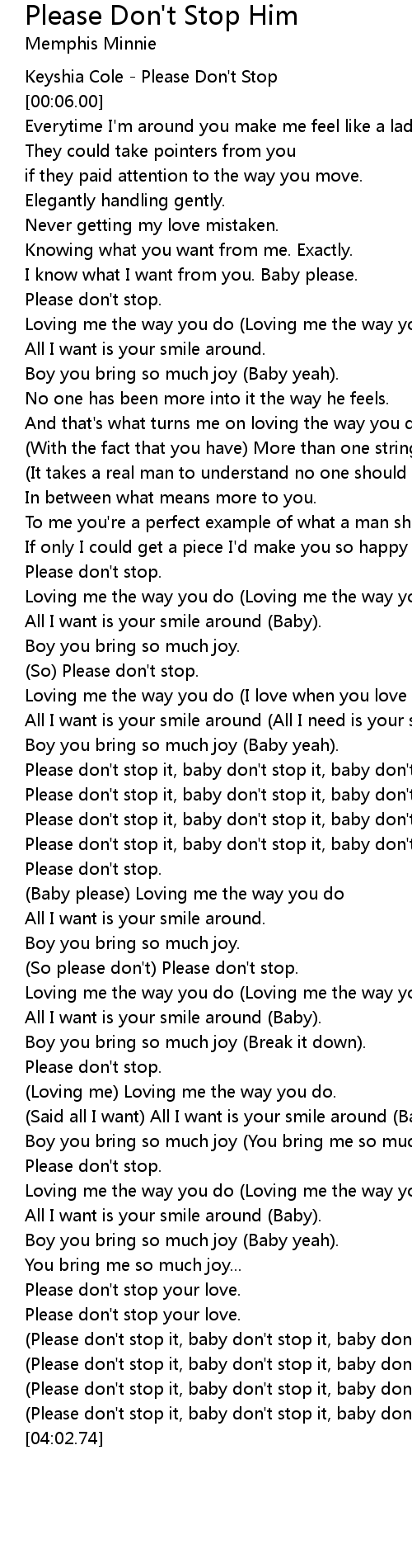 Please don't stop it, baby don't stop it, baby don't stop your love. |