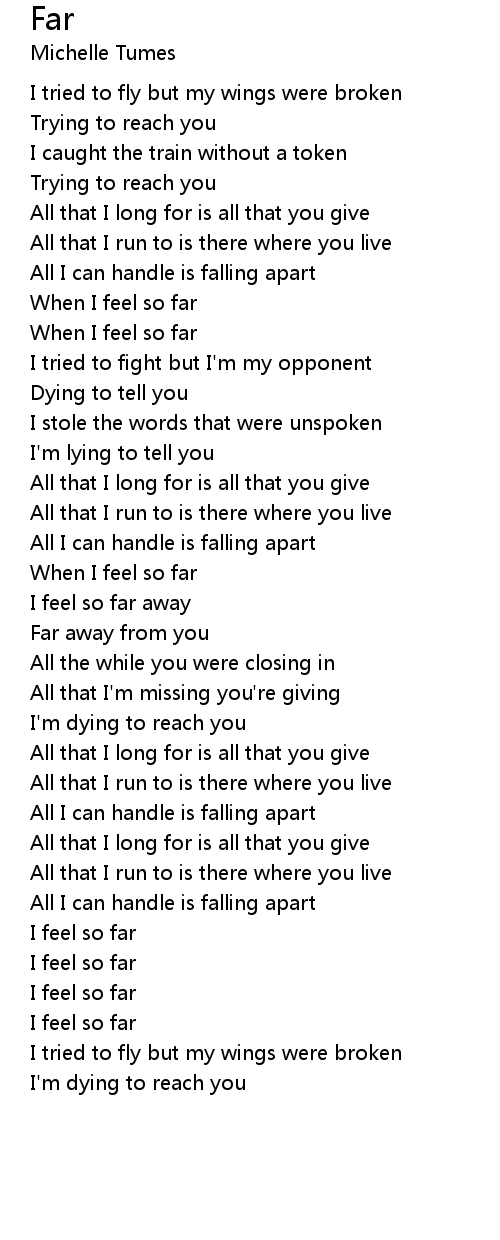 When I feel so far |