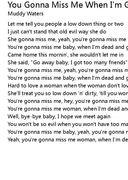 Yeah, you're gonna miss me woman, when I'm dead and gone