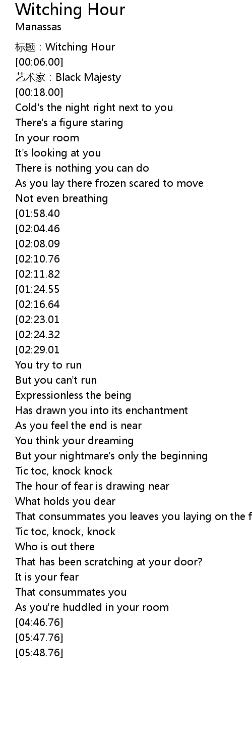 | [00:00.00] | 标题:Witching Hour |