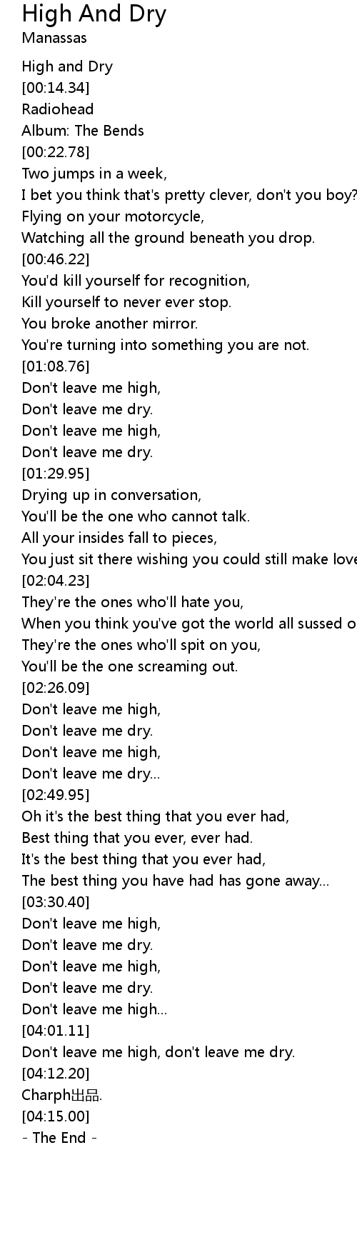| [00:08.91] | High and Dry |