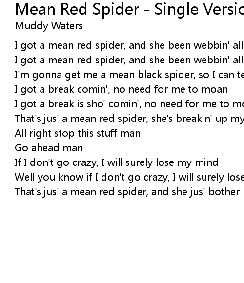 That's jus' a mean red spider, she's breakin' up my happy home |