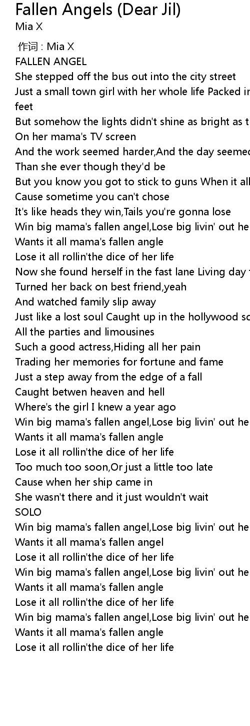 | [01:04.60] | Win big mama's fallen angel,Lose big livin' out her lies |