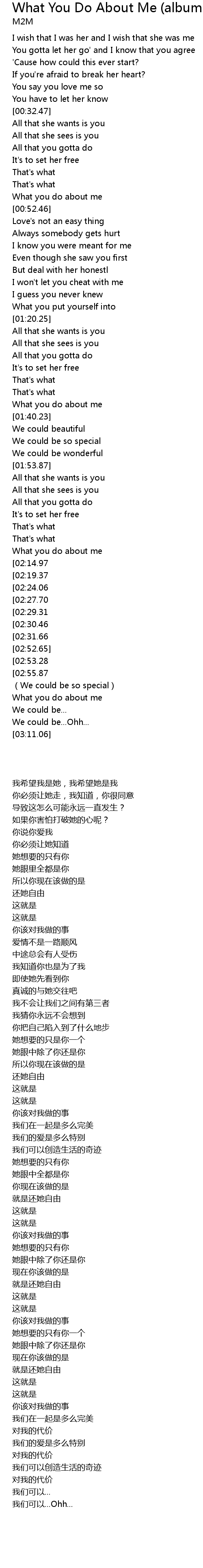 | [03:04.89][02:55.87] | What you do about me |