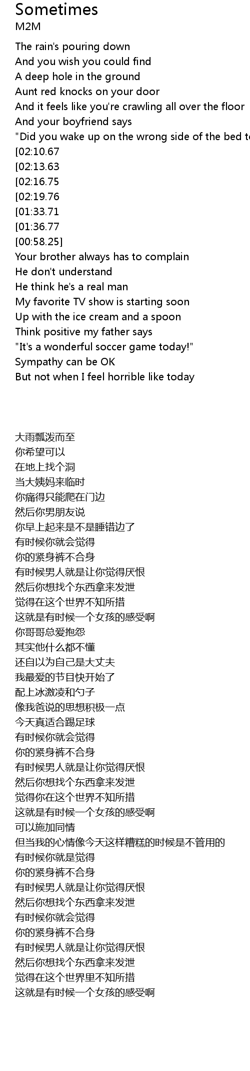 | [02:38.69][01:36.77][00:51.14] |
