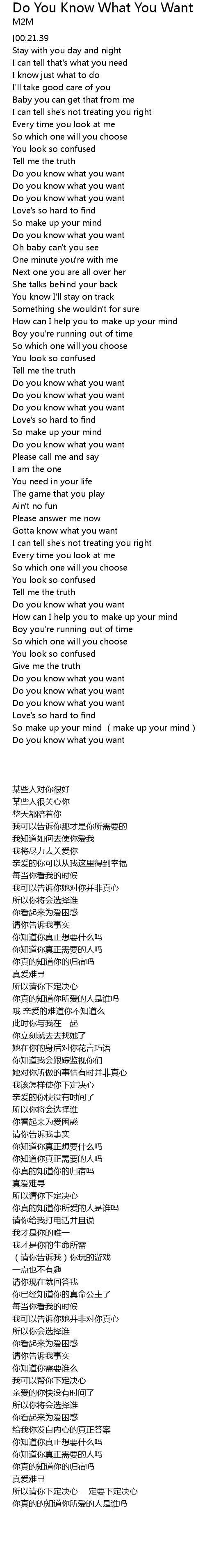 | [00:06.00][00:21.39] | Someone who treats you right |