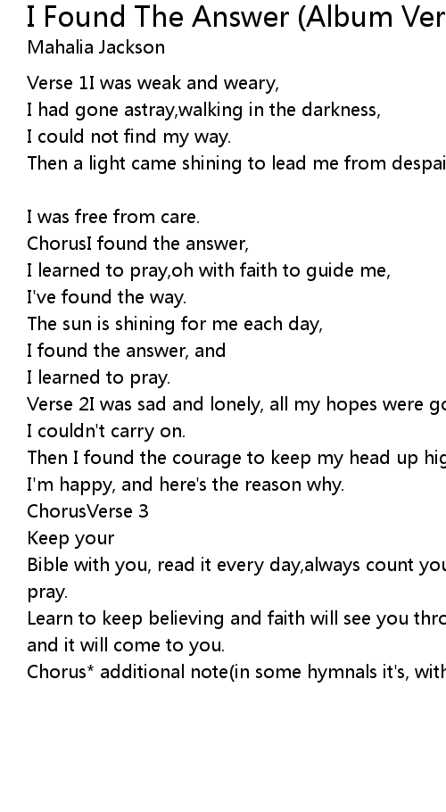 I Found The Answer (Album Version) Lyrics