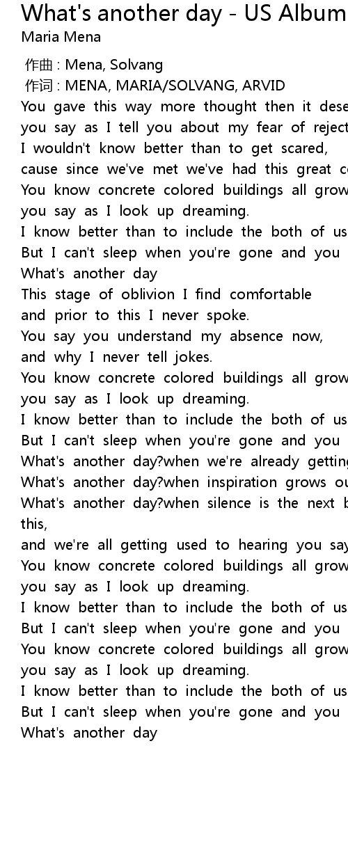 | [00:01.00] | 作词 : MENA, MARIA/SOLVANG, ARVID |
