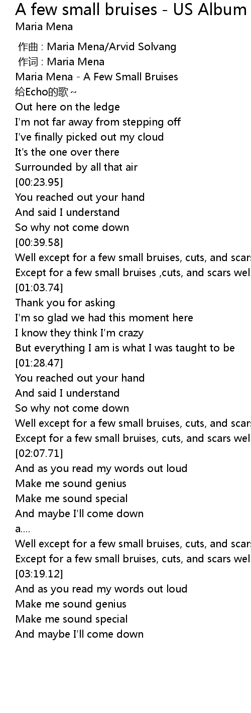 | [00:00.93] | Maria Mena A Few Small Bruises |