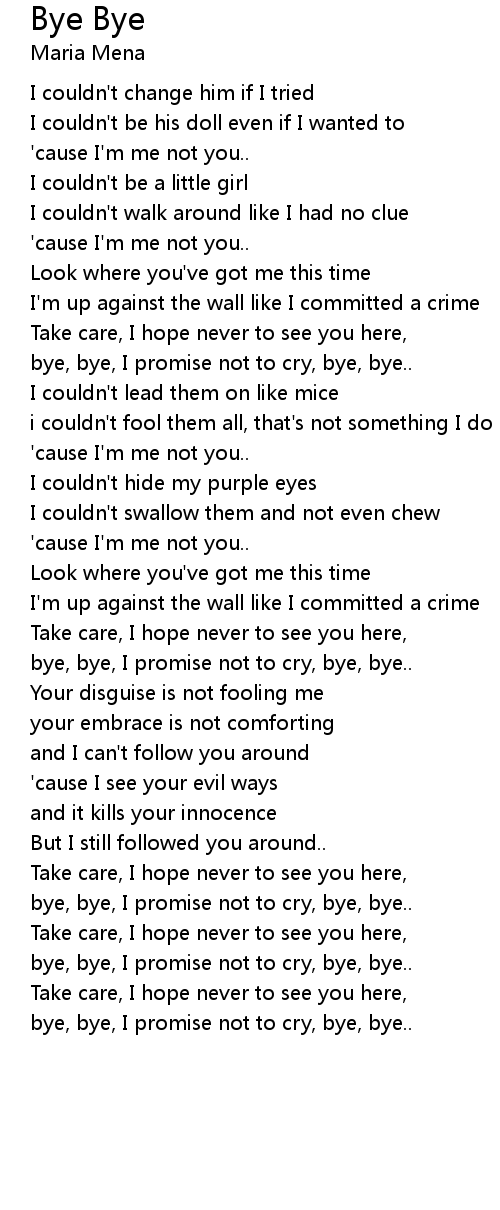 bye, bye, I promise not to cry, bye, bye.. |