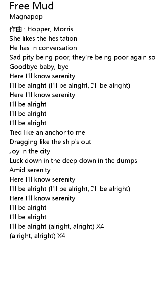 | I' ll be alright I' ll be alright, I' ll be alright | |