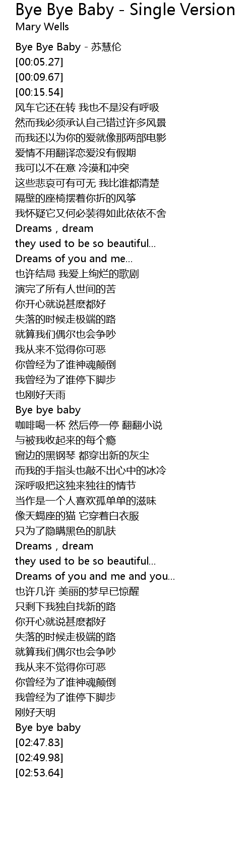 | [00:02.32] | Bye Bye Baby - 苏慧伦 |