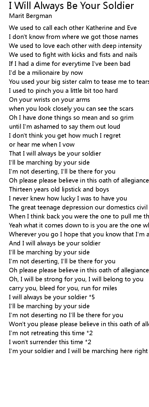 I Will Always Be Your Soldier Lyrics