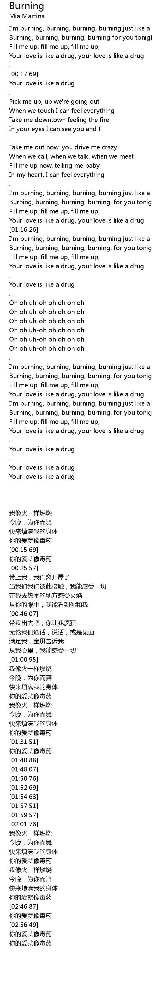 I'm burning, burning, burning, burning just like a fire, |