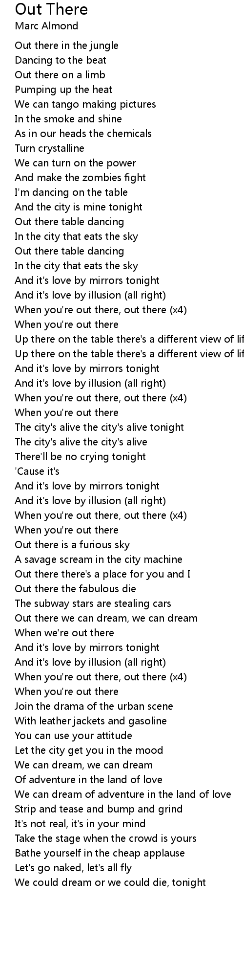 When you're out there, out there (x4) |