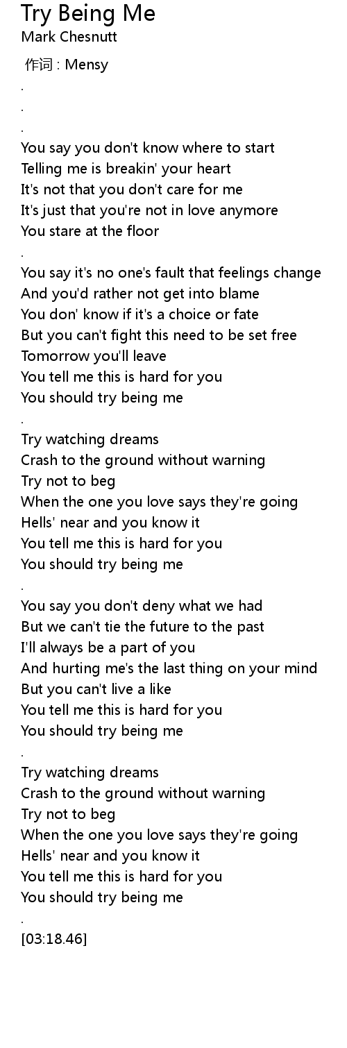 | [01:09.79] | You tell me this is hard for you |
