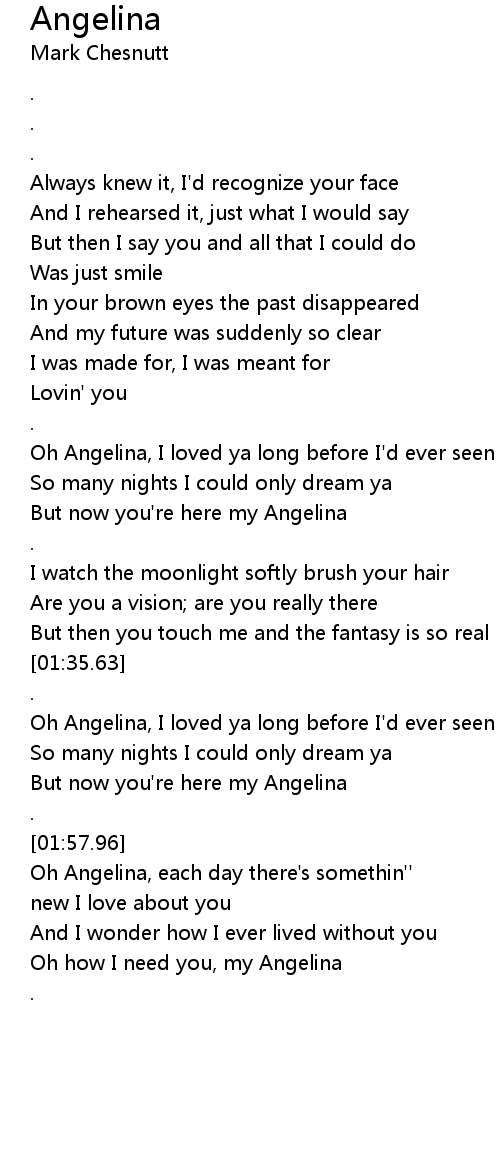 Oh Angelina, I loved ya long before I'd ever seen ya |