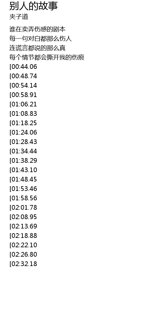 | [00:39.05] | 每个情节都会撕开我的伤痕 |