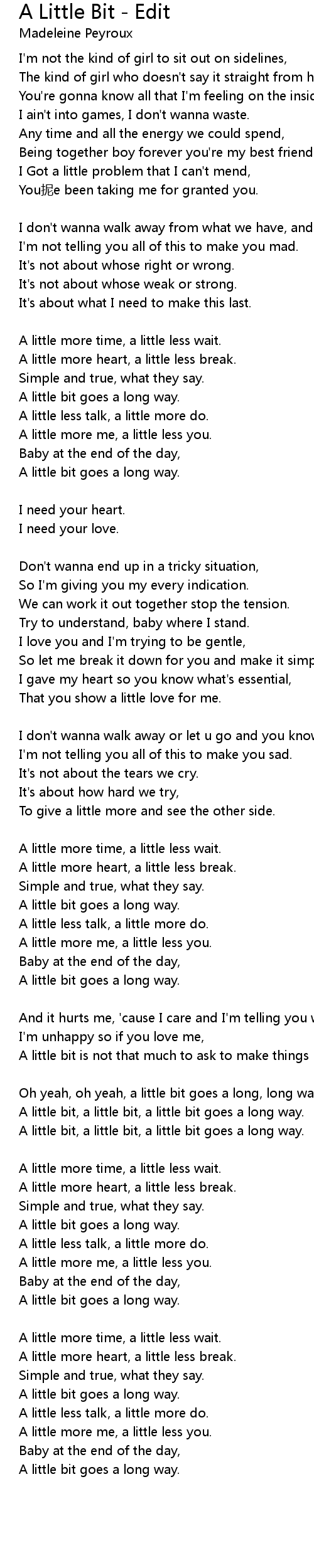 | Oh yeah, oh yeah, a little bit goes a long, long way | |