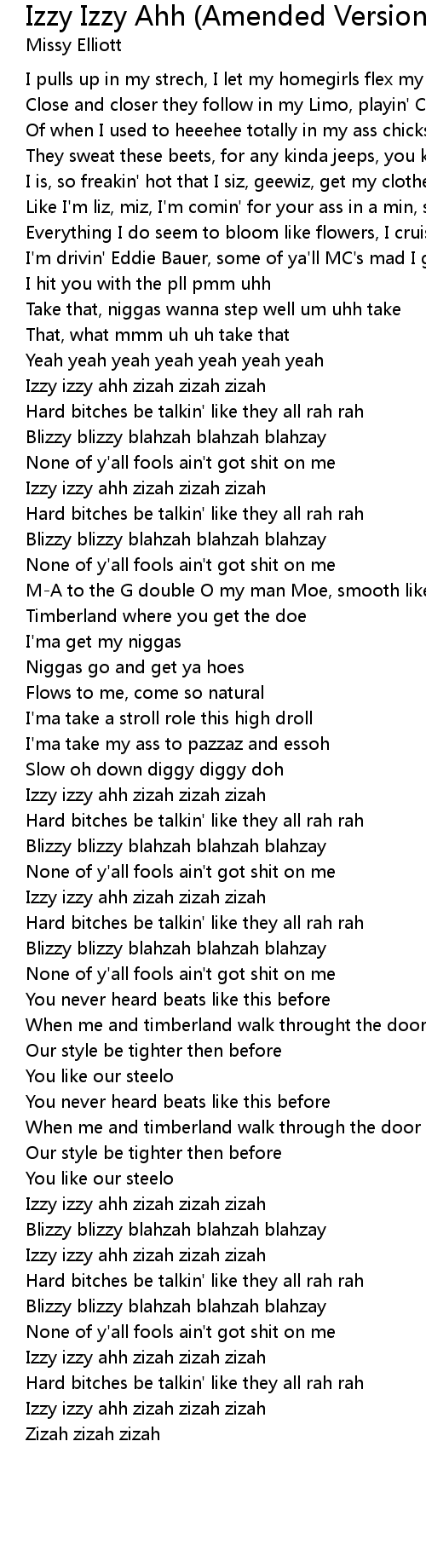 Izzy Izzy Ahh (Amended Version) Lyrics