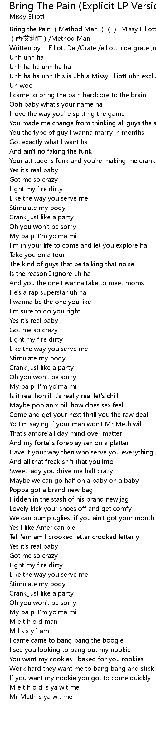 | [00:00.00] | Bring the Pain (Method Man )()-Missy Elliott (西·艾莉特)/Method Man |
