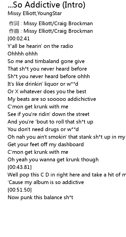 | [00:00.000] | 作词 : Missy Elliott/Craig Brockman |