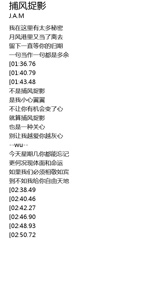 | [02:55.42][02:38.49][01:46.26] | 真的捕风捉影 |