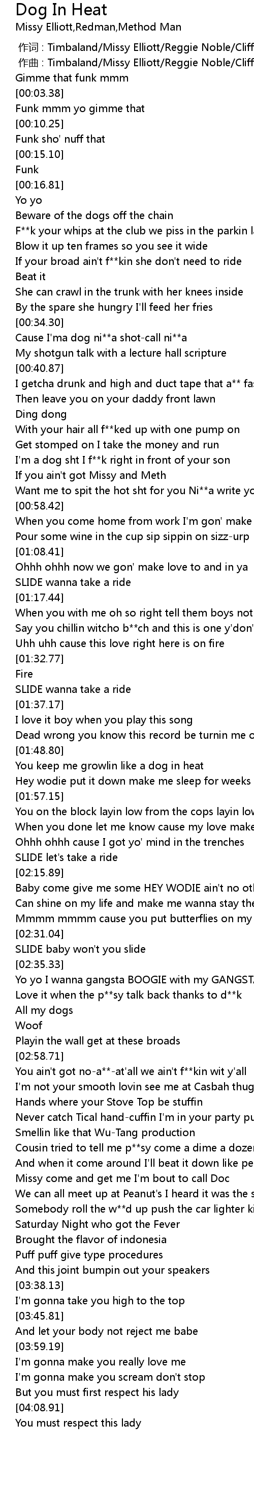 | [03:19.61] | Missy come and get me I' m bout to call Doc |