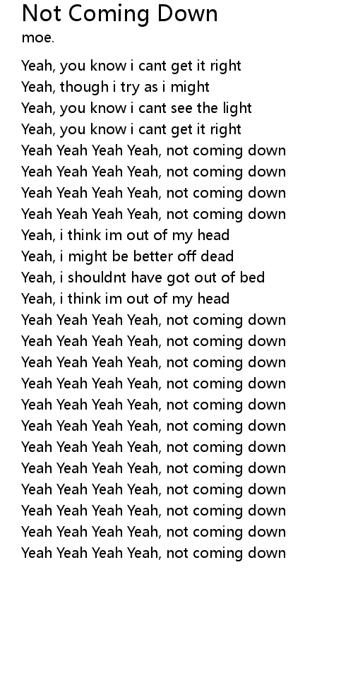 | Yeah Yeah Yeah Yeah, not coming down | |