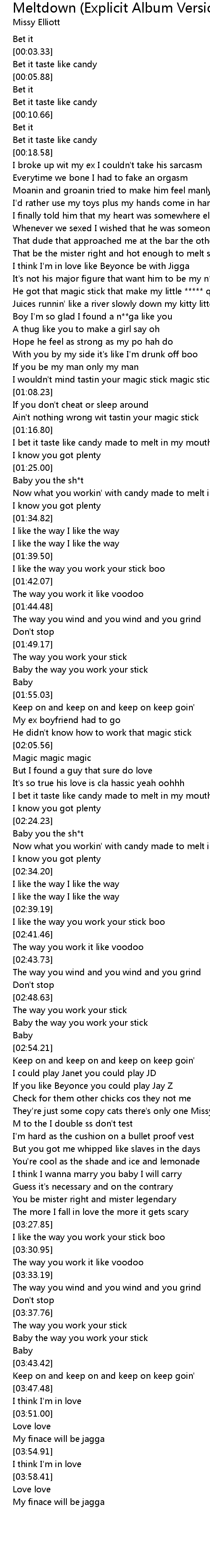 | [01:02.38] | I wouldn' t mind tastin your magic stick magic stick |