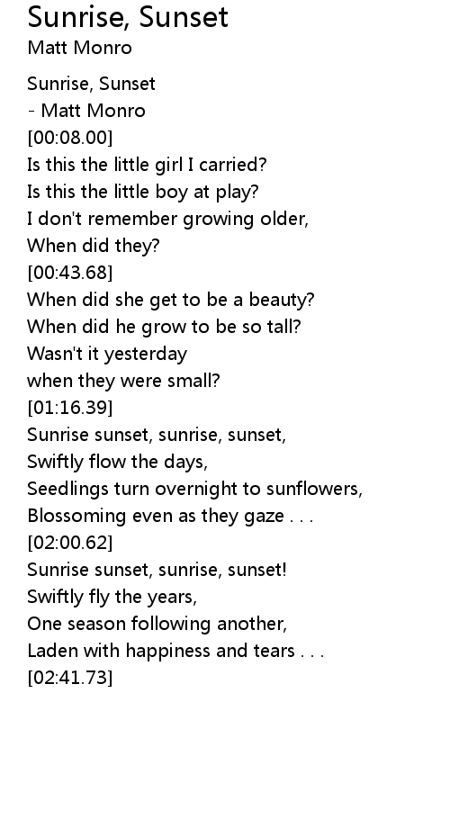 Sunrise sunset, sunrise, sunset, |