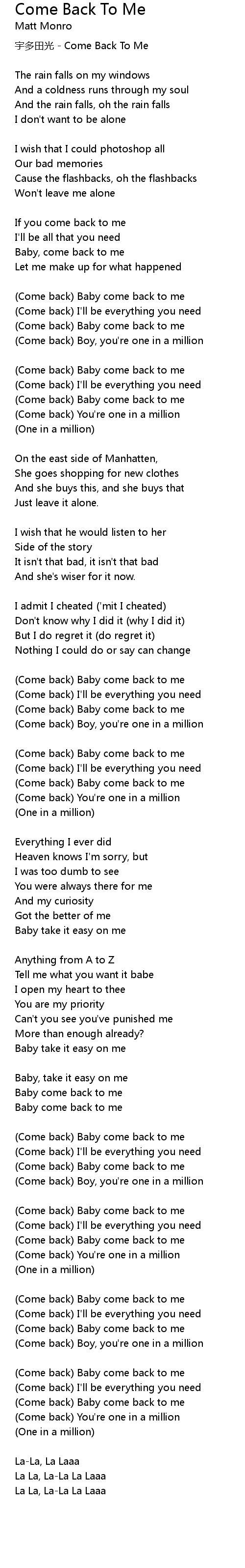 | 宇多田光 - Come Back To Me | |