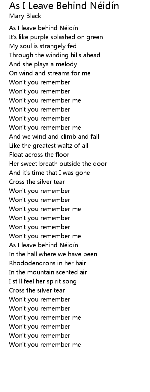 | Song | As I Leave Behind Néidín |