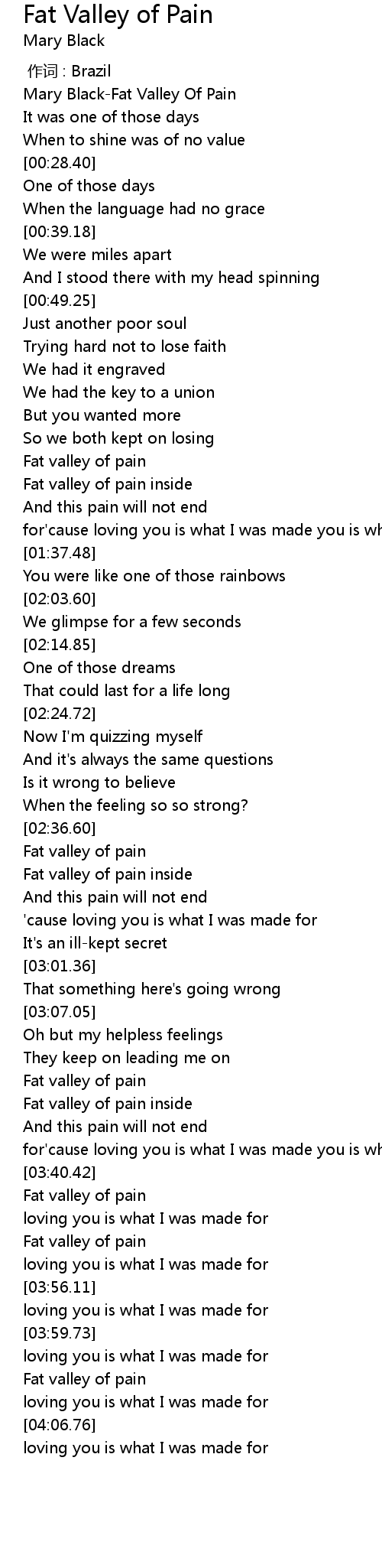 | [02:38.80] | Fat valley of pain |