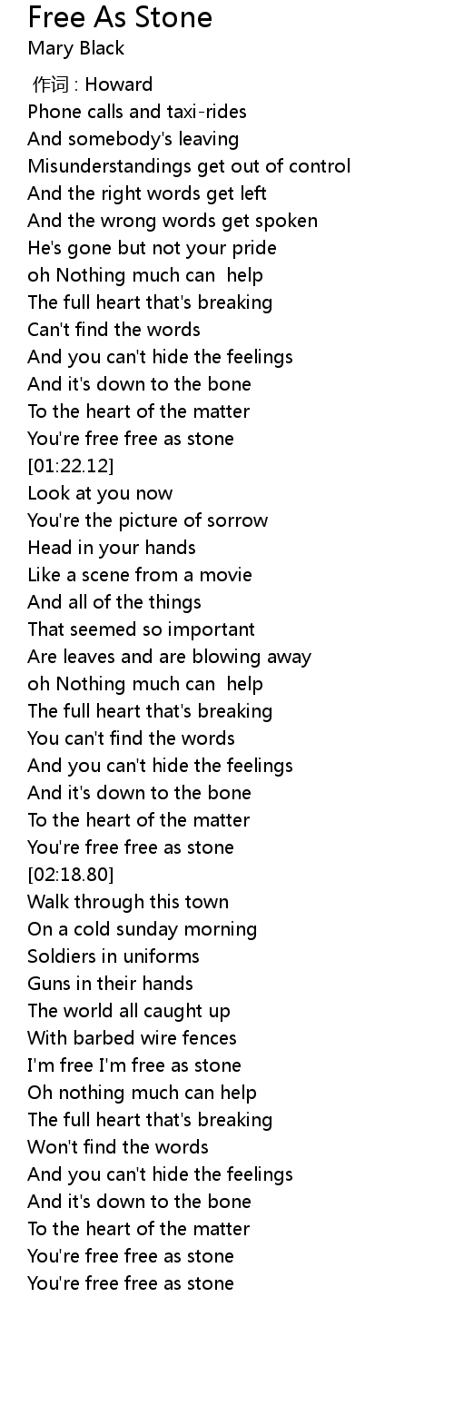 | [03:35.26] | You're free free as stone |