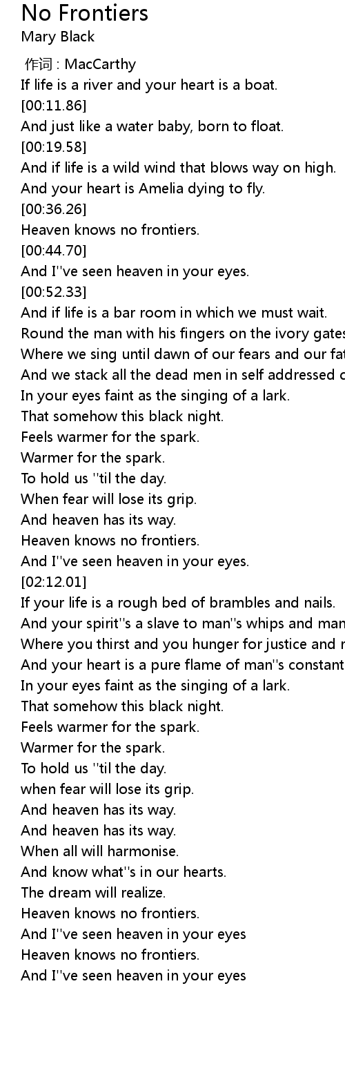 | [04:01.32] | And I'' ve seen heaven in your eyes |