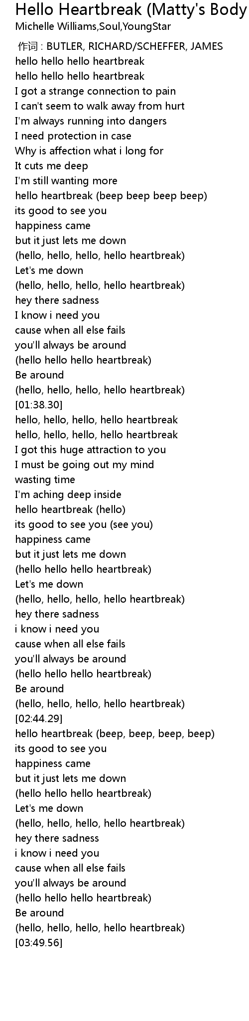 | [02:22.95] | hello, hello, hello, hello heartbreak |