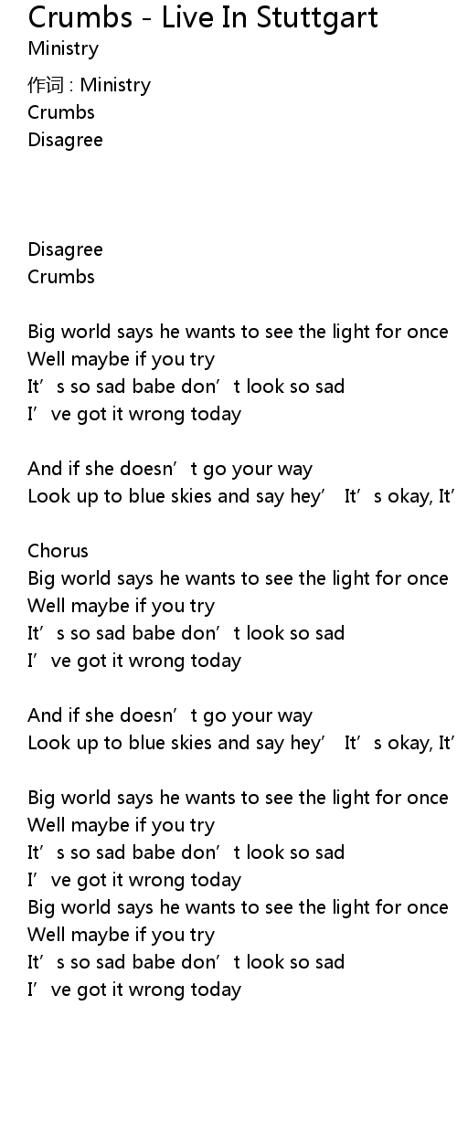 | Look up to blue skies and say hey’ It’s okay, It’s okay | |