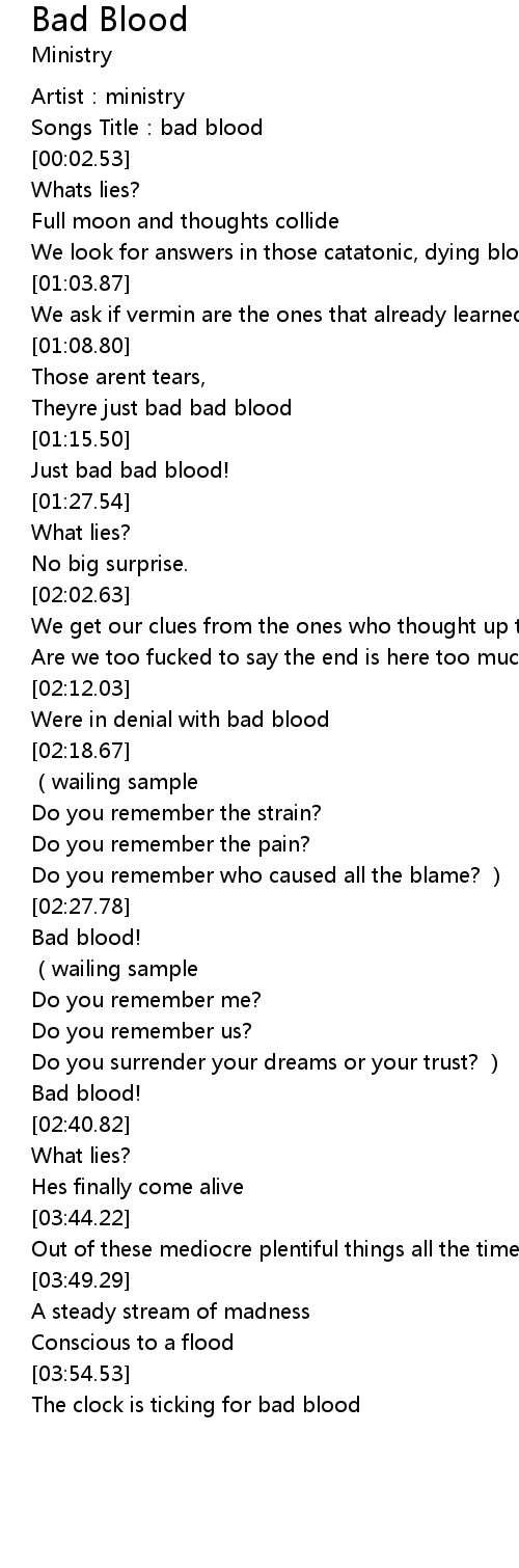 | [00:59.75] | We look for answers in those catatonic, dying blod-shot eyes |