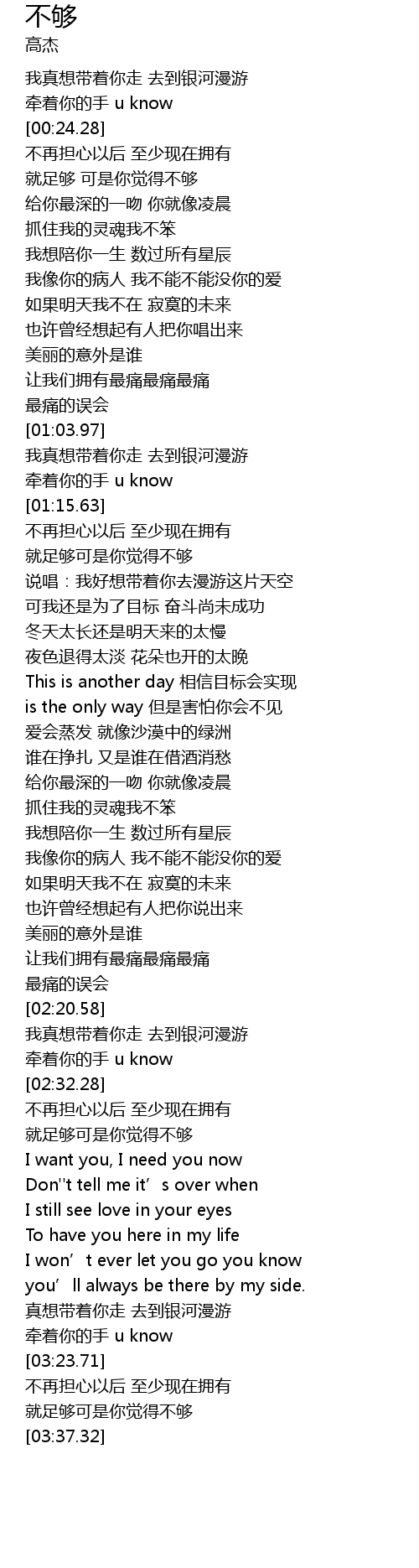 | [01:24.23] | jiù zú gòu kě shì nǐ jué de bù gòu |
