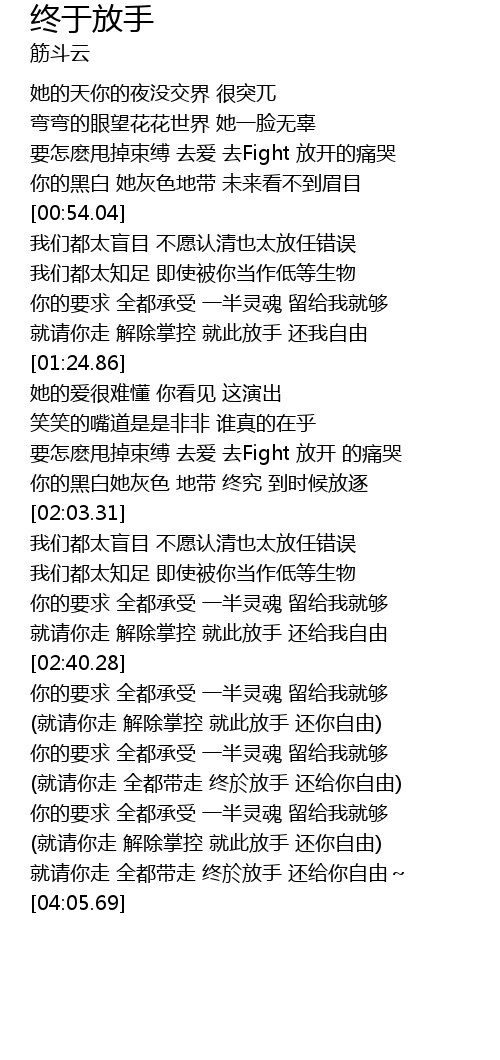 | [03:43.90] | (就请你走 解除掌控 就此放手 还你自由) |