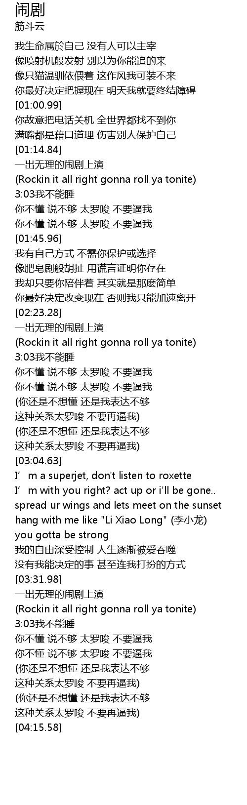 | [03:05.32] | I’m a superjet, don't listen to roxette |