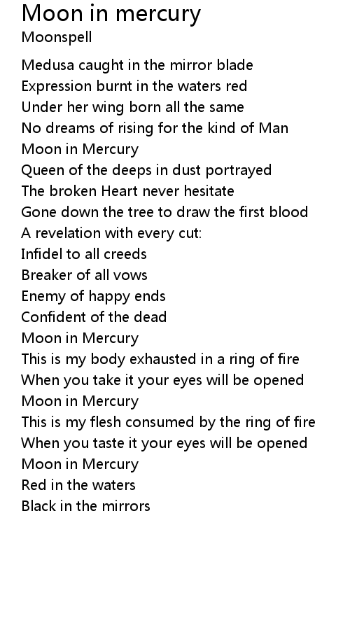 Moon in mercury Lyrics