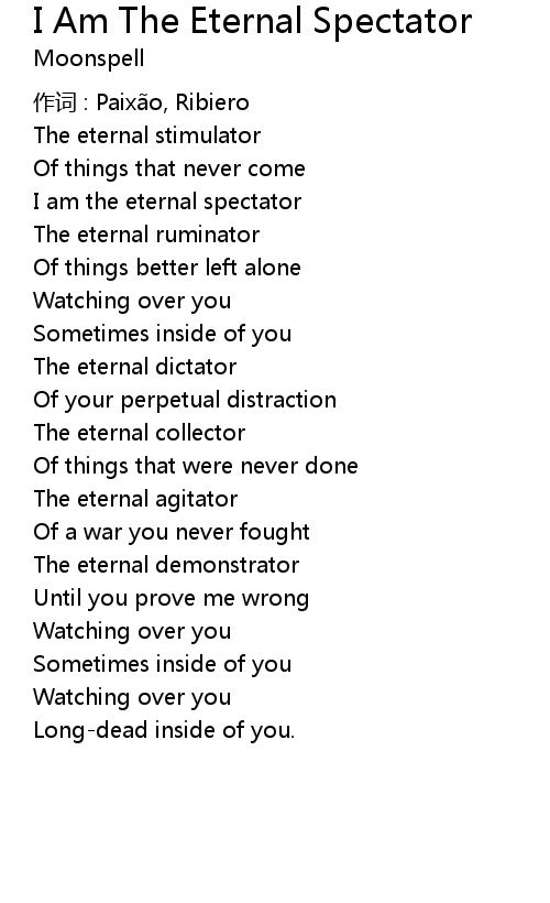 | Song | I Am The Eternal Spectator |