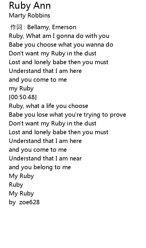 | [00:04.54] | Ruby, What am I gonna do with you |