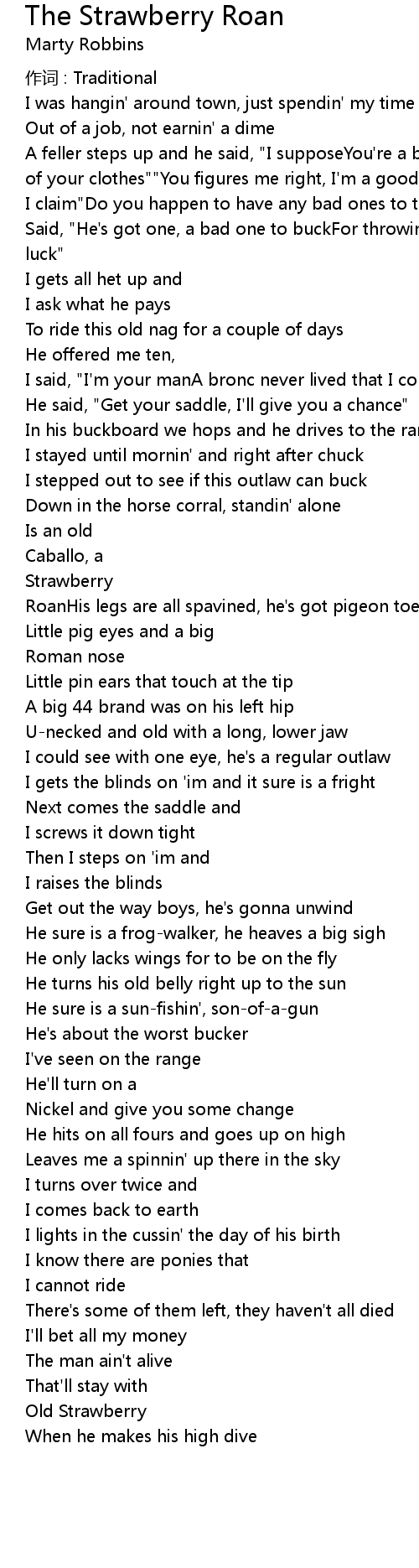 | Said, "He's got one, a bad one to buckFor throwin' good riders, he's had lots of luck" | |