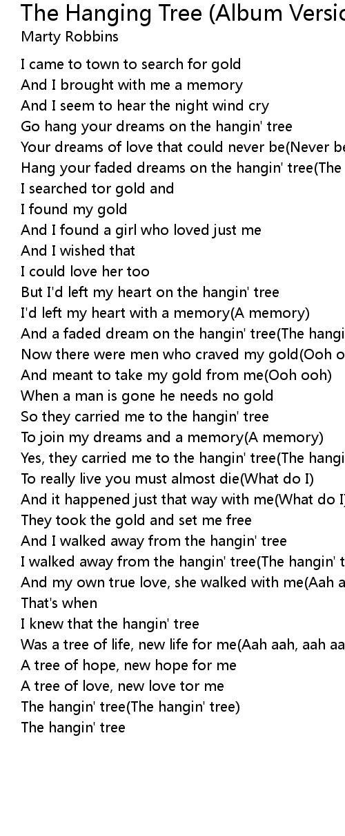 Hang your faded dreams on the hangin' tree(The hangin' tree) |