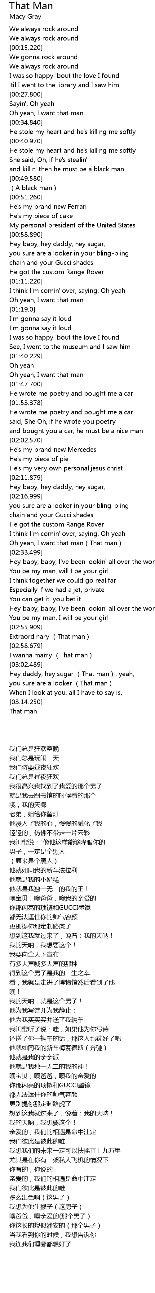 | [03:03.799] | Hey daddy, hey sugar That man, yeah, |