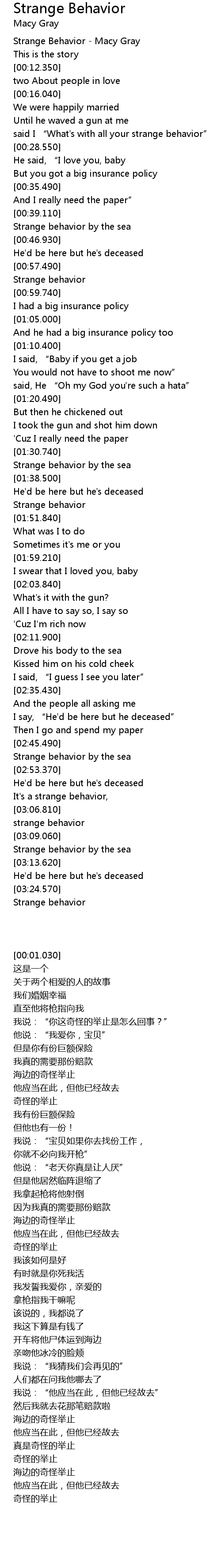 | [00:01.030] | Strange Behavior - Macy Gray |
