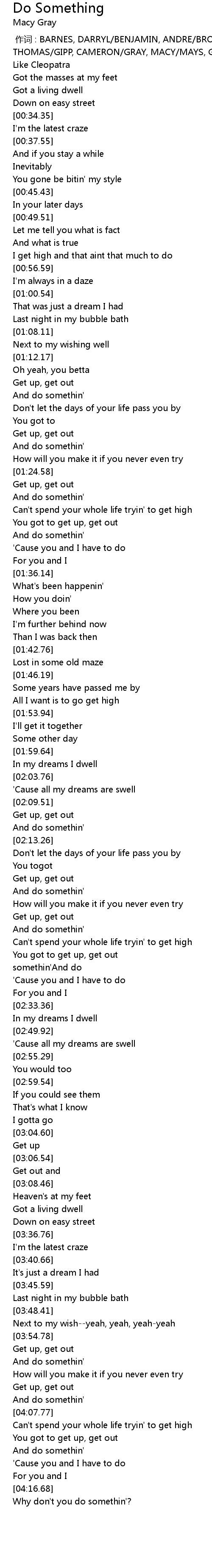 | [00:00.00] | zuò cí : BARNES, DARRYL BENJAMIN, ANDRE BROWN, PATRICK BURTON, THOMAS GIPP, CAMERON GRAY, MACY MAYS, GREG MUR |